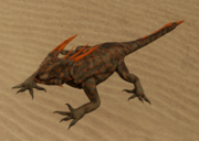 A carnivorous reptile that inhabits the deeper recesses of the Jade Caves of the Dome. It tends to attack using a barbed tail which exudes a paralytic substance, then feeding on the paralyzed animal. Will eat adventurers, miners, krataks and rats. Height varies widely, and its venom is sought after in alchemy and medicine.