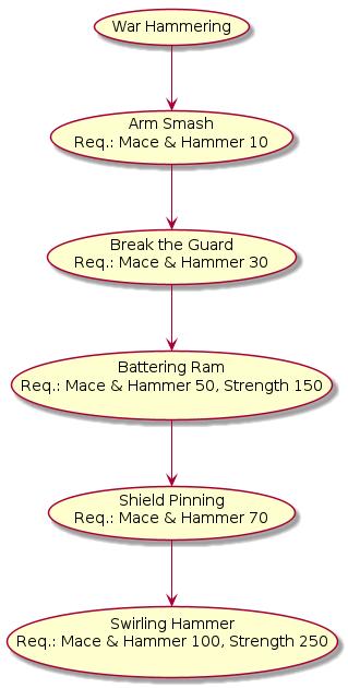 ''Requirements'': Mace & Hammer skill | ''Requirements'': Mace & Hammer skill 10 or Sword skill 10 or Axe skill 10, Strength 50. | ||