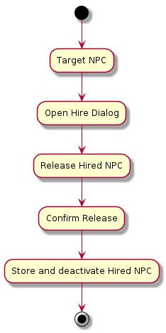 A NPC that is no longer needed can be released. This will be done from the Hire dialog.