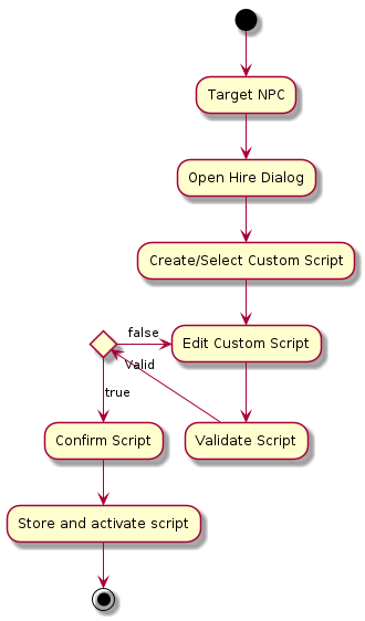 Hired NPCs can be scripted. User open the hire dialog to enter new scripts for the NPC.