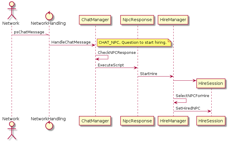 This sequence will establish the HireSession object in the HireManager. NetworkHandling is an abstraction of all the network related stuff.