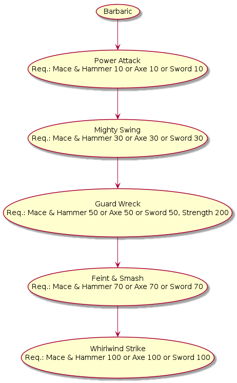 Requirements: Mace & Hammer skill 10 or Sword skill 10 or Axe skill 10, Strength 50.